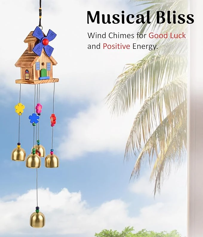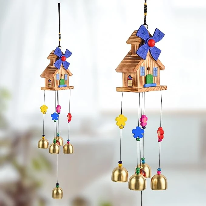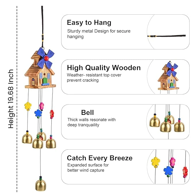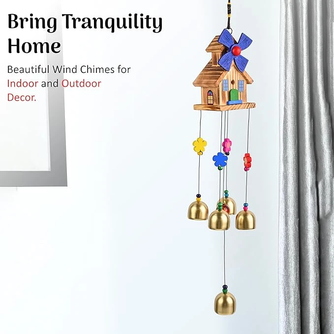 Durable & Long-Lasting Design: Crafted with a sturdy wooden top, strong nylon strings and premium bells for durability in all weather conditions — reliable for outdoor wind chimes for balcony and long-term daily use.