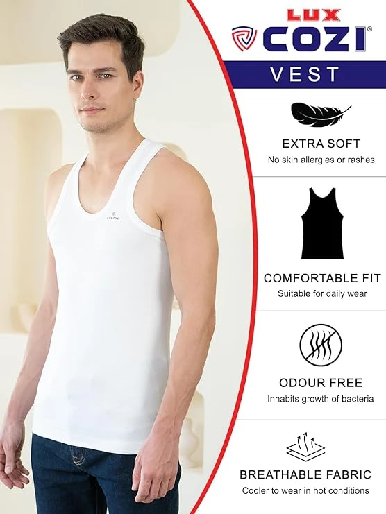 100% cotton vest for men with superior comfort and breathability. Ultra-soft fabric for a luxurious feel. Constructed with premium quality yarn for added durability.